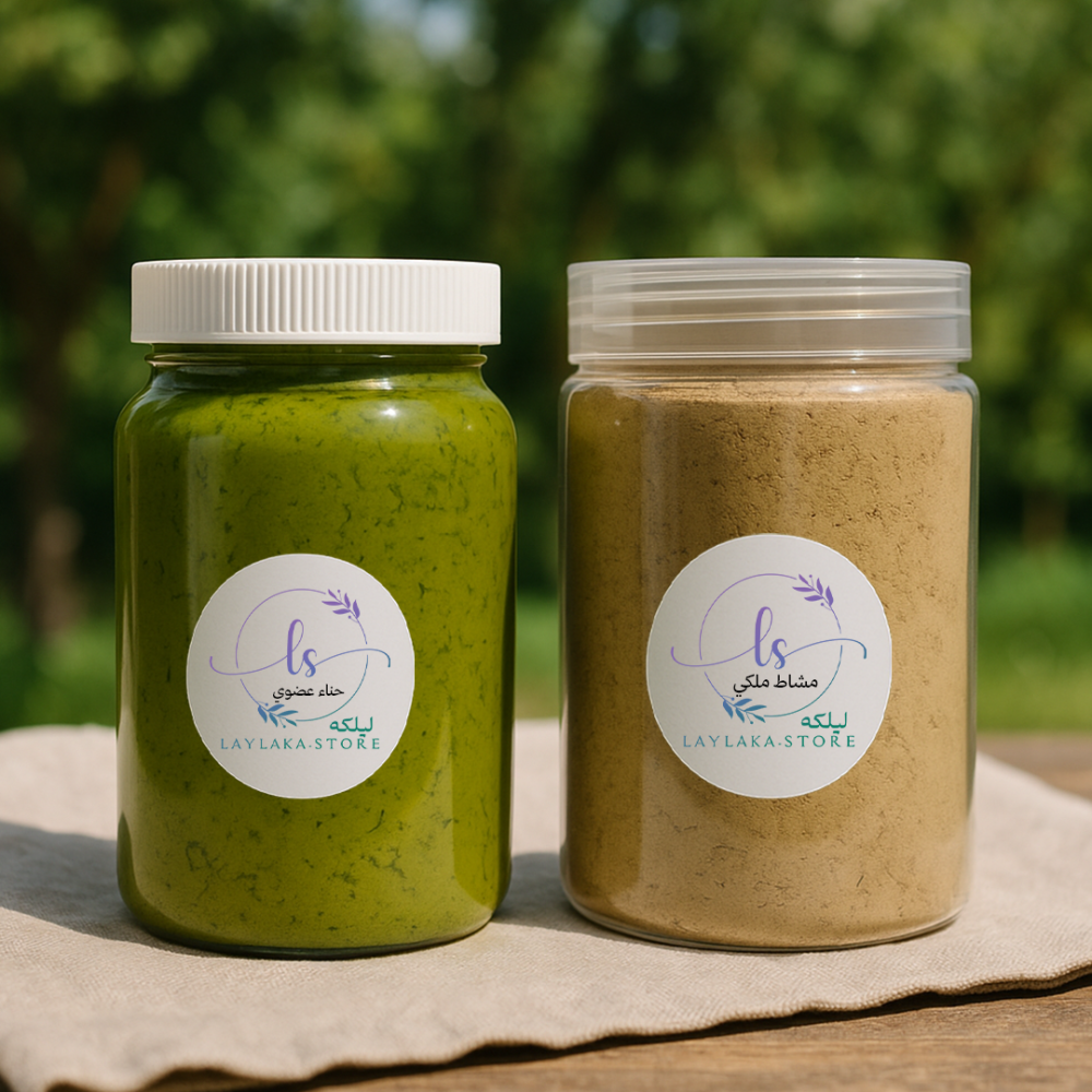 - الحناء العضوية النقية: تمنح الشعر لونًا ثابتًا وصحيًا، وتغذيه من العمق، مع إمكانية استخدامها لنقوش تقليدية على البشرة.